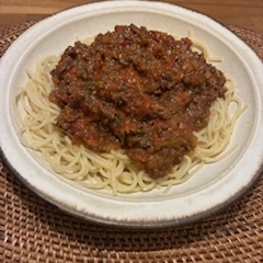 お客さまから、鹿肉を頂き野菜たっぷりのミートソースを作ってみました。低脂肪、高タンパク、臭みも全くなく、美味しいミートソースが出来ました!